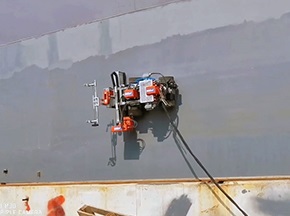 德高潔結(jié)合儲(chǔ)罐腐蝕機(jī)制及現(xiàn)場工況,對儲(chǔ)罐防腐工藝及設(shè)備進(jìn)行升級(jí);罐體表面高壓水爬壁機(jī)器人除銹Sa2.5+噴漆爬壁機(jī)器人噴涂,通過爬壁機(jī)器人搭載除銹噴漆裝置進(jìn)行施工,全程僅需人工手持遙控器控制爬壁機(jī)器人高空作業(yè),配備相關(guān)安全、環(huán)保措施,實(shí)現(xiàn)儲(chǔ)罐除銹噴涂高效、高質(zhì)、安全的施工標(biāo)準(zhǔn);[查看詳情]